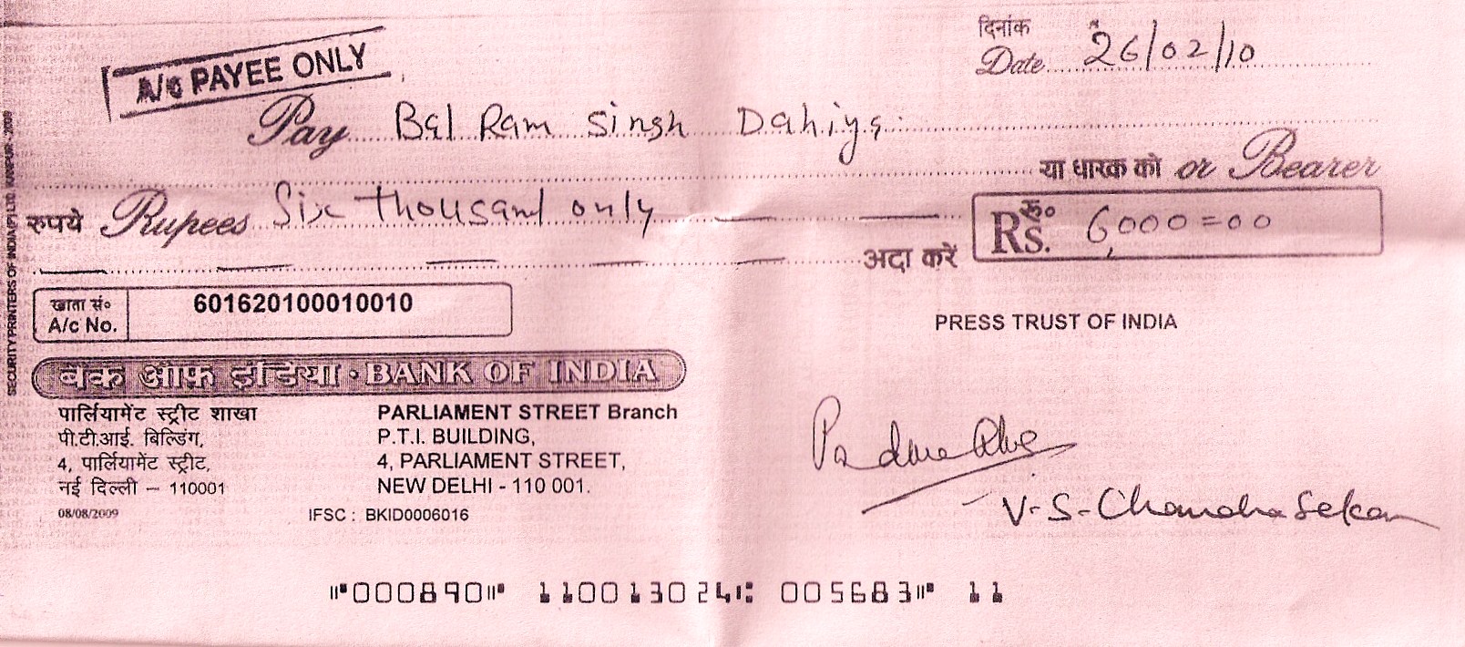 Now, I am happy to share with you the impact Greater Voice had on this case, as you can see, on the right, a cheque dated 26.2.2010 of Rs.6000 (now) paid by PTI to Balram Singh Dahiya. Another cheque of similar amount is reported to have been sent to Vinod Kumar also. (Read about an earlier Greater Voice impact here.)