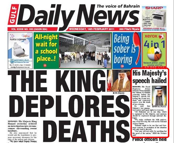 February 16, 2011January 16, 2013Neeraj Bhushan Dictators Always Overdo Kristof Look what the people in Bahrain are reading today: “His Majesty’s Speech Hailed.” So, do you say that the dictators always overdo it ? Two-time Pulitzer Prize winner New York Times columnist Nicholas Kristof says, “Yes”. Rate this:Sharing Options: Click to share on WhatsApp (Opens in new window) WhatsApp Click to share on Facebook (Opens in new window) Facebook Click to share on X (Opens in new window) X Click to email a link to a friend (Opens in new window) Email Click to print (Opens in new window) Print More Click to share on Tumblr (Opens in new window) Tumblr Click to share on Reddit (Opens in new window) Reddit Click to share on LinkedIn (Opens in new window) LinkedIn Click to share on Pinterest (Opens in new window) Pinterest Click to share on Telegram (Opens in new window) Telegram Click to share on Pocket (Opens in new window) Pocket Like Loading...